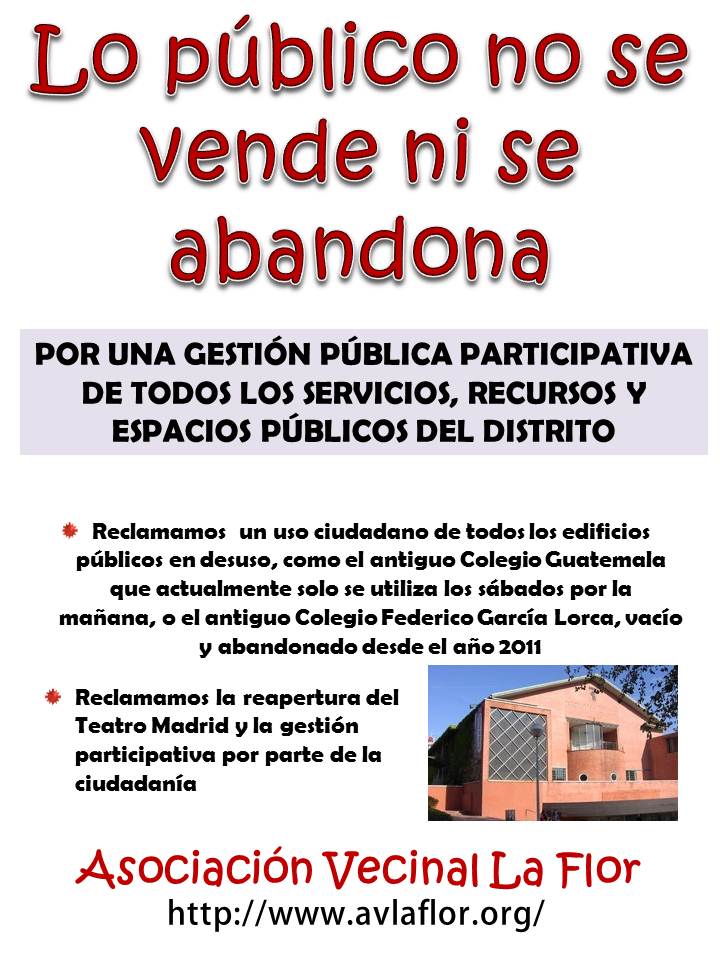 Este domingo 10 de marzo vamos a realizar una concentración ante la Junta de Distrito entre las 12 de la mañana y las 14 h, por la defensa de...