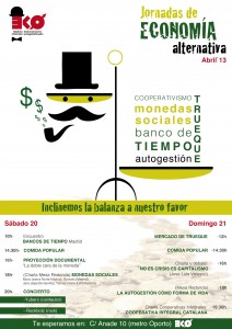 JORNADAS DE ECONOMÍA ALTERNATIVA (TRUEQUE, INTERCAMBIO, BANCOS DE TIEMPO, MONEDAS SOCIALES, ETC) El sábado 20 y el domingo 21 de abril, en el...